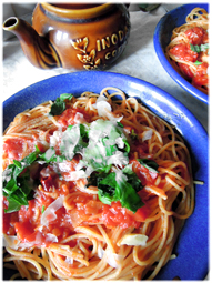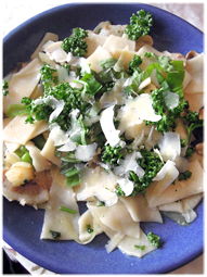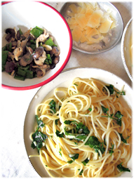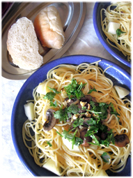 じゃがいもとニンニク、マッシュルームとイタパセのパスタ。