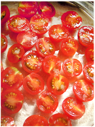 こんな天気なので、プチトマトを半割にして甘塩を振り、
