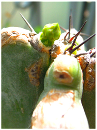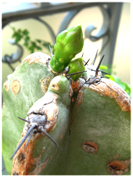 サボテンの花芽の横に、小さな花芽がまた一つ。