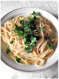じゃがいもとニンニク、マッシュルームとイタパセのパスタ。
