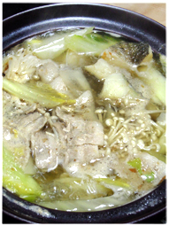 タラと白菜ときのこと、豆腐とマロニーちゃんらで。