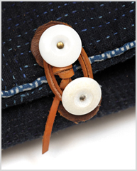 かぶせや前ポケットには、イギリスの100年前のアンティークボタンをあしらいました。