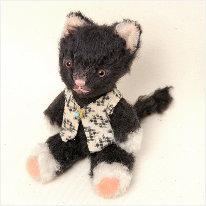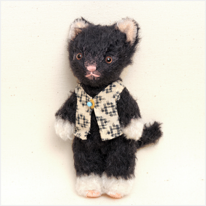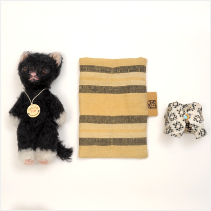 薺nazunaが作るテディキャットなので、心地よい古布で作ったシャツと、